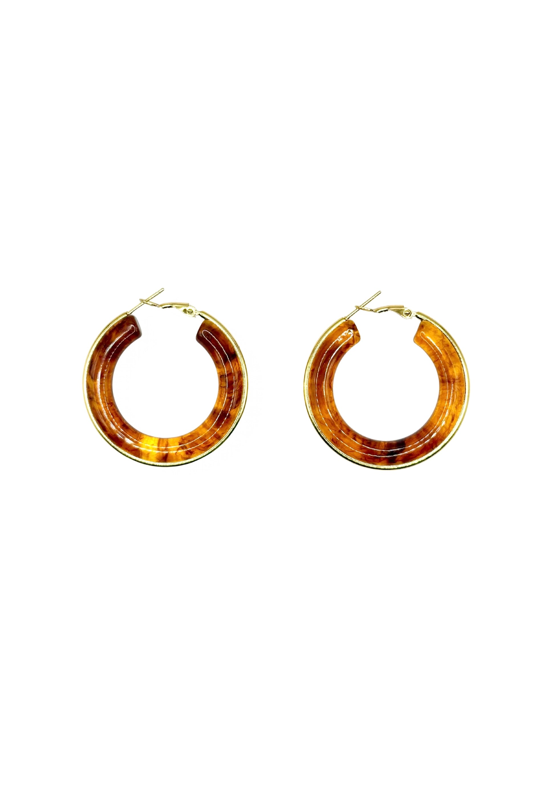 Boucles d’oreilles créoles en acier inoxydable doré et résine.